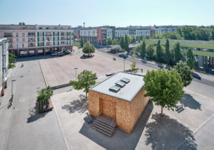 BU: Der markante Holzbau (©NORBERT MIGULETZ)