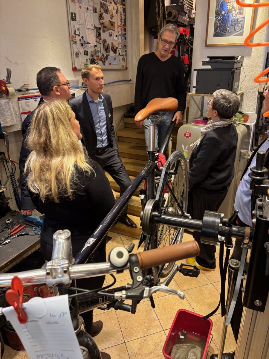 Weitere Stationen gaben Einblicke in langjährig gewachsene Strukturen. Das Tonstudio Sinus AV ist seit den 1990er-Jahren ein Partner für Film und Werbung, kämpft jedoch mit zu geringer Sichtbarkeit. Ganz andere Themen bewegen die Firma Weitzdörfer Kälte- und Klimatechnik, die seit vier Generationen in Familienhand ist und vor allem unter der schwierigen Parksituation leidet. Die Velopraxis Sachsenhausen wiederum präsentierte sich mit einem klaren Profil als spezialisierte Fahrradwerkstatt, bevor die Tour im Traditionslokal Apfelwein Wagner endete – wo die Teilnehmer den Wirtschaftstag für den Austausch untereinander nutzten.