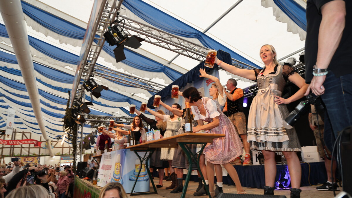 Rund 50.000 Menschen feierten in den vergangenen fast vier Wochen im Festzelt vor dem Deutsche Bank Park das 15. Frankfurter Oktoberfest. Ihr Ende fand das diesjährige Fest mit dem traditionellen Familien- und Party- Frühschoppen, bei dem die Oktoberfest-Band die Stimmung noch einmal richtig anheizten. Zudem lieferten sich die Finalistinnen und Finalisten der Vorentscheide beim Maßkrugstemmen einen finalen Wettkampf.