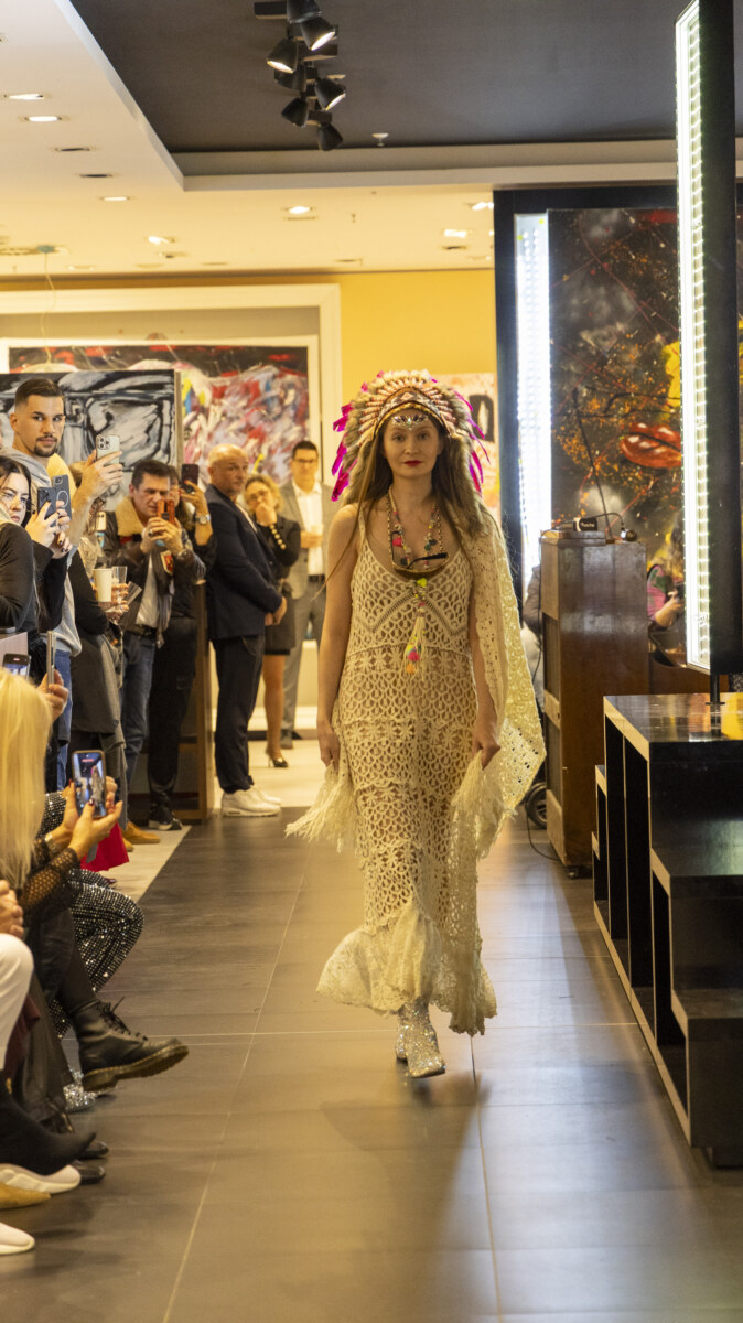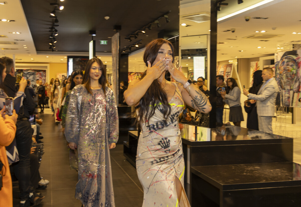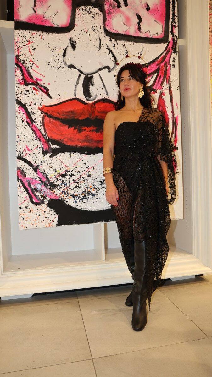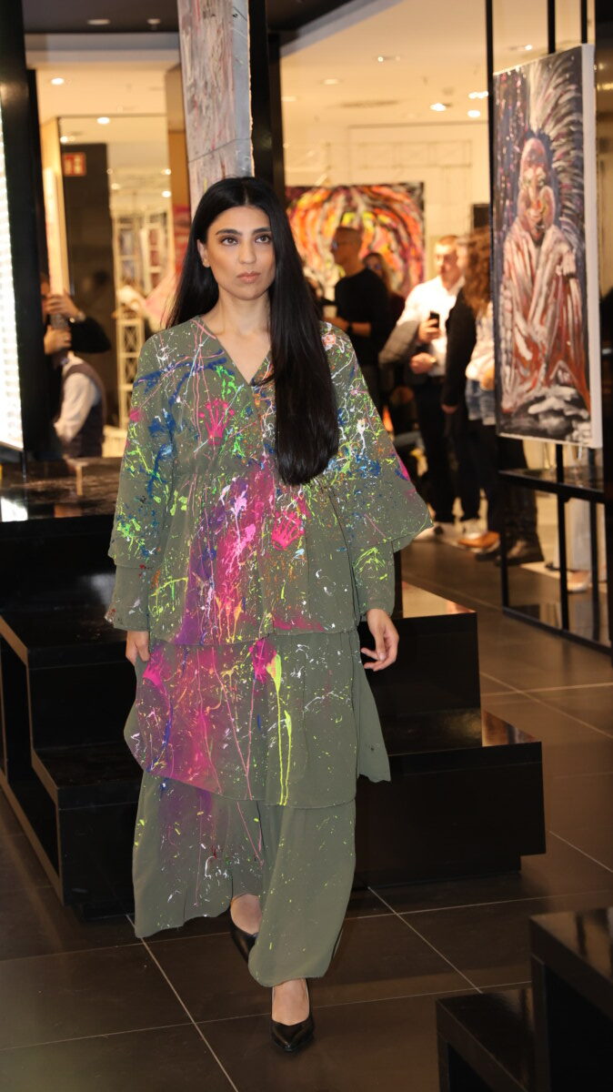 Glitzernde Mode, die Wafa Tomalla geschöpft und getragen hat