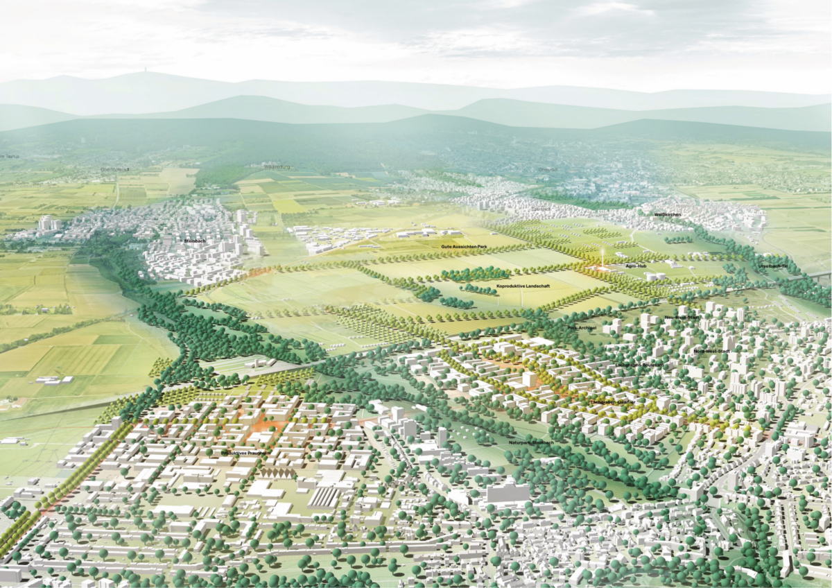 Im Frankfurter Nordwesten schafft die Stadt mit dem neuen „Stadtteil der Quartiere“ die Grundlage für dringend benötigten Wohnraum und Arbeitsplätze. Vorgesehen sind rund 6800 Wohnungen für etwa 17.000 Menschen, rund 5000 Arbeitsplätze sowie Schulen, Kitas und Sport- und Freizeiteinrichtungen. Die städtebauliche Entwicklungsmaßnahme sichert zudem westlich der A5 den regionalen Grünzug – durch eine gemeinsam mit der Landwirtschaft entwickelte koproduktive Landschaft. Mit der beschlossenen städtebaulichen Entwicklungssatzung wird das Verfahren zur qualitätsvollen Entwicklung des neuen Stadtteils gestartet. Die Planungsvariante Ost sieht eine kompakte Bebauung östlich der A5 vor, während westlich der Autobahn die Landschaft dauerhaft freigehalten und gemeinsam mit der Landwirtschaft weiterentwickelt wird.