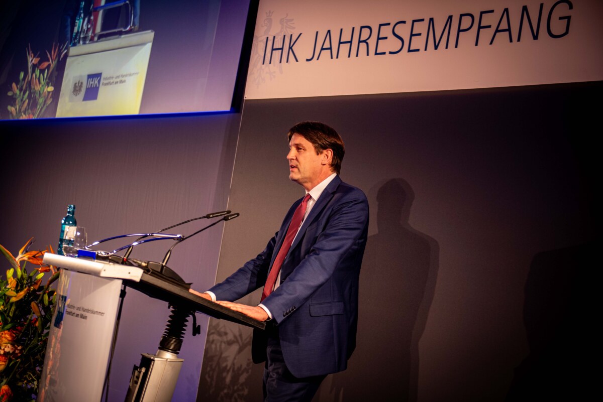 In seinem Grußwort sagte Hessens Ministerpräsident Boris Rhein: „Die Zahlen zeigen es: Die IHK Frankfurt ist Herzkammer der hessischen Wirtschaft und vorbildliches Beispiel für unsere starke Wirtschaftskraft.“ Angesichts Krisen, Transformationsdruck und Handelskonflikten müsse Deutschland „resilienter und souveräner“ werden.