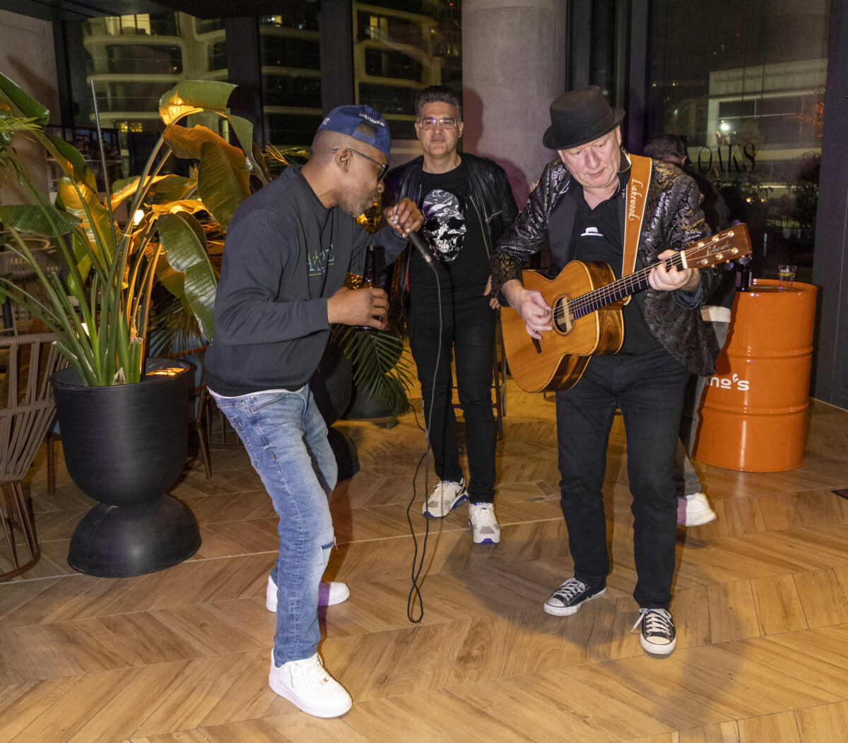 Mit Santana und dem Song „Maria, Maria“ gewann der Sänger Marvin Moore einen Grammy. Spontan und am Ende des Event von Frabrizio Levita schneite er in die Bar OAKS im NH-Collection im Twin-Tower vorbei. Wunderbarweise konnten die noch anwesenden Musiker ihn motivieren, den Santana Song zu performen. Mehr vom Live-Abend „Oaks Skyline Acoustic Lounge“ gibt es hier später.