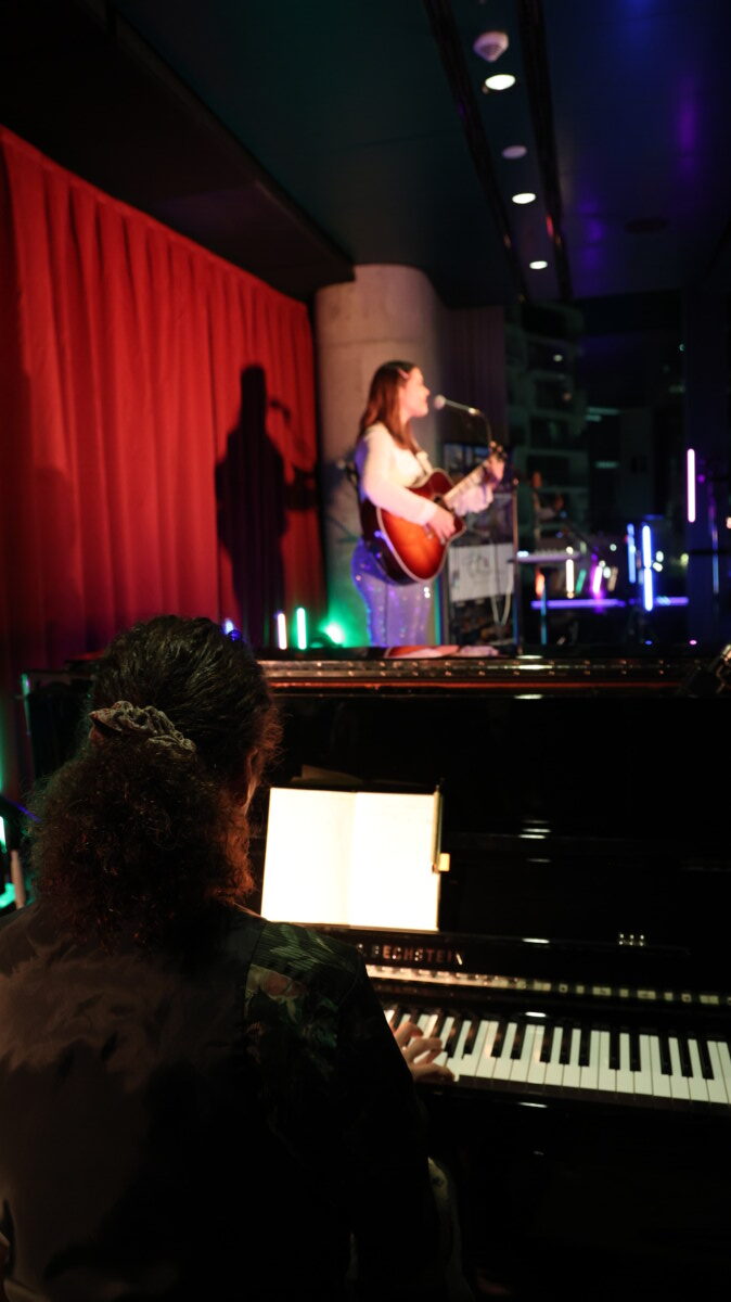 FRANKFURT (RED/BT) Ein weiterer stimmungsvoller Abend der „Oaks Skyline Acoustic Lounge“ im NH Collection Spin Tower zeigte einmal mehr, warum sich die Reihe wachsender Beliebtheit erfreut. Gastgeber Fabrizio Levita präsentierte gemeinsam mit wechselnden Musikerinnen und Musikern ein abwechslungsreiches Programm aus Pop, Soul und akustischen Arrangements – nahbar, hochwertig und mit viel Gefühl. Mit dabei waren Sänger/MusikerMatthias Bierbrauer mit Gitarre, Singer-Songwriter Laura Heily aus Wien, Pianistin Anastasia, Sing-Songwriterin Maiva, Hr3 Morning Show Moderator Marcel Wagner und auch Gastgeber Fabrizio Levita sang mit seiner unvergleichlichen Stimme.